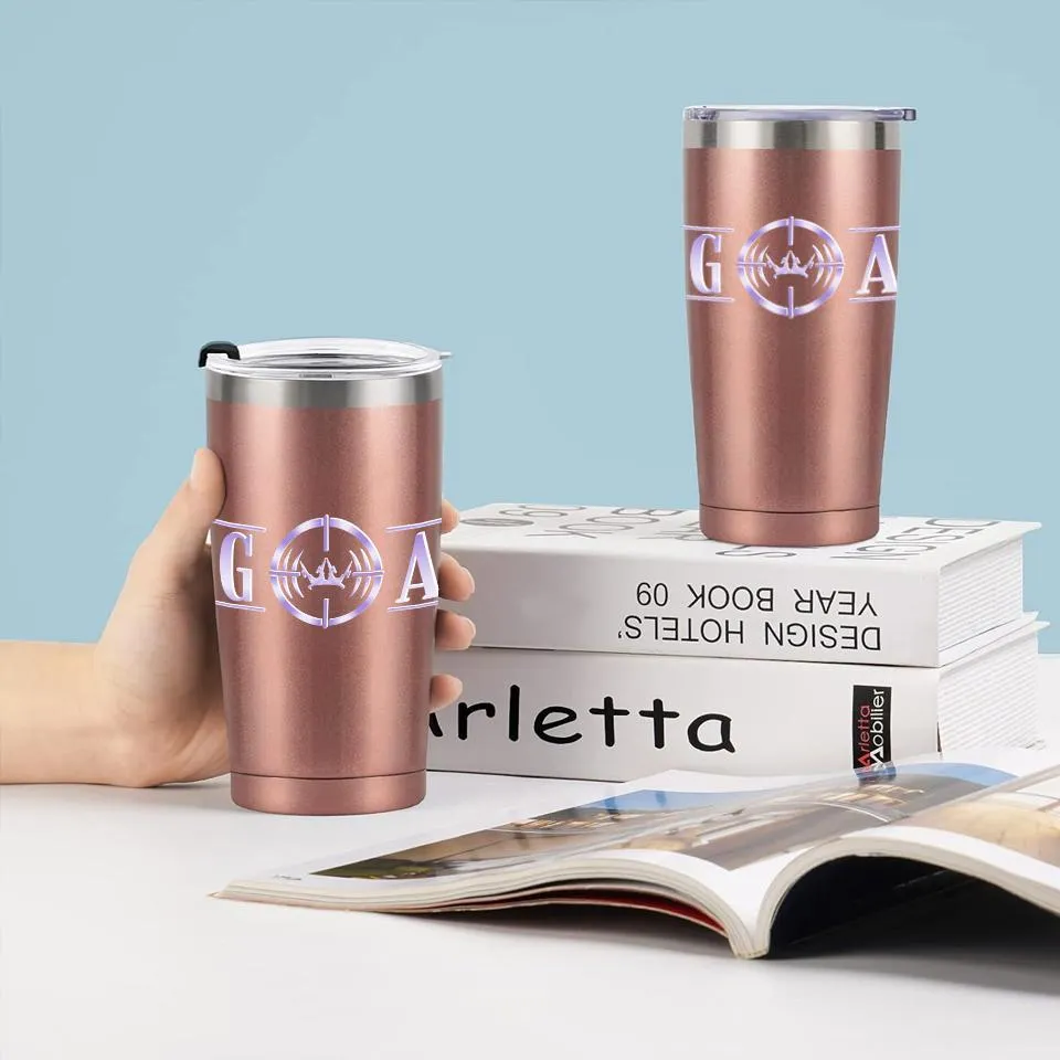 WGOAA Tumbler: High-quality, stainless steel with a rose gold coating, keeping your beverages hot or cold for hours.